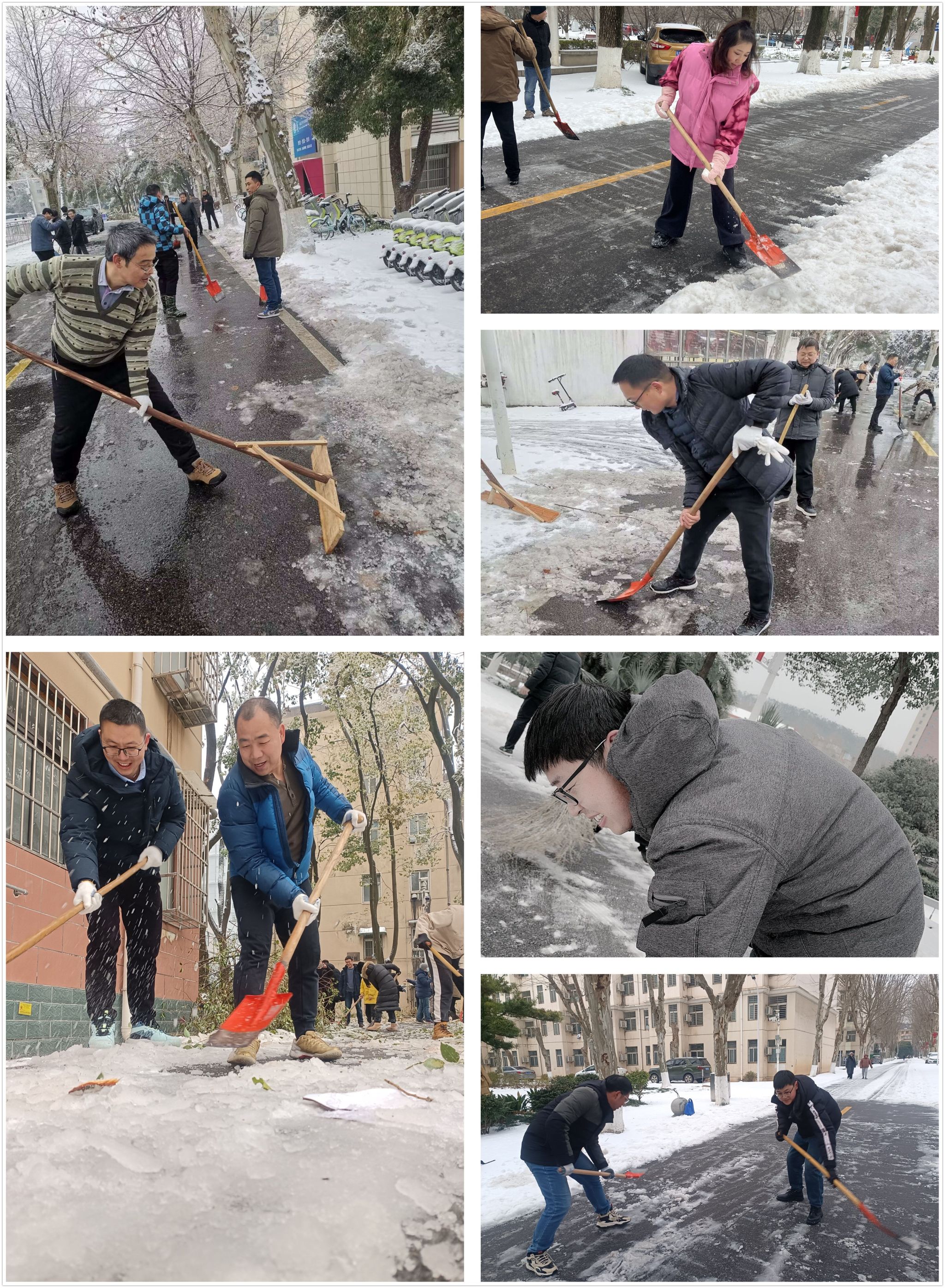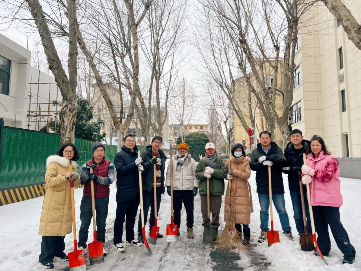 新学期开学在即,武汉再次出现极端雨雪冰冻天气。黄色直播 党委第一时间响应学校扫雪除冰清障志愿服务工作号召,迅速部署,广大教职员工积极踊跃报名,先后共有13人以实际行动战风雪,破寒冰,为师生安全保驾护航,生动诠释了“一个支部就是一座堡垒,一名党员就是一面旗帜”。